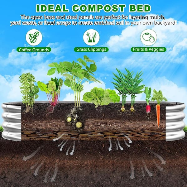 Galvanized Metal Oval Raised Garden Bed Planter Box- 4 ft. L x 2 ft. W x 1 ft. H Outdoor Elevated Planting Bed in Silver