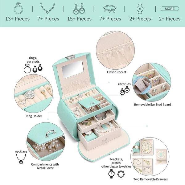 Princess Style 3-Layer Jewelry Box with Mirror, Green