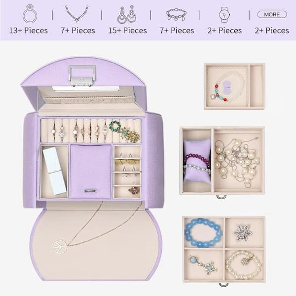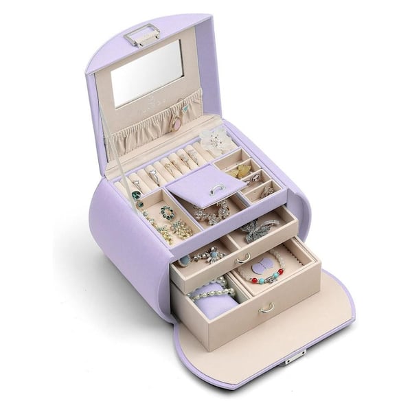 Princess Style 3-Layer Jewelry Box with Mirror, Light Purple