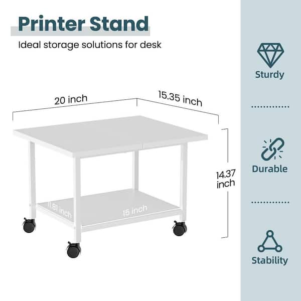 Printer Stand with Storage Under Desk Shelf Rolling Cart Organizer for Home Office White