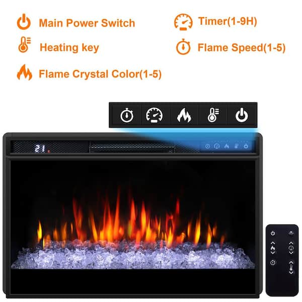 26 in. Recessed Electric Fireplace Inserts with Crystal,Remote Control,Timer,Black