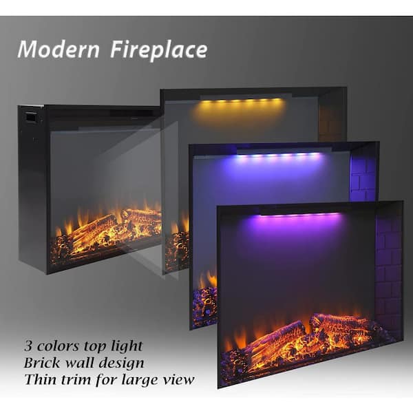 36 in. Electric Fireplace Insert for Existing Fireplace or TV Stand, 3-Top Light Colors, 750/1500-Watt, Black