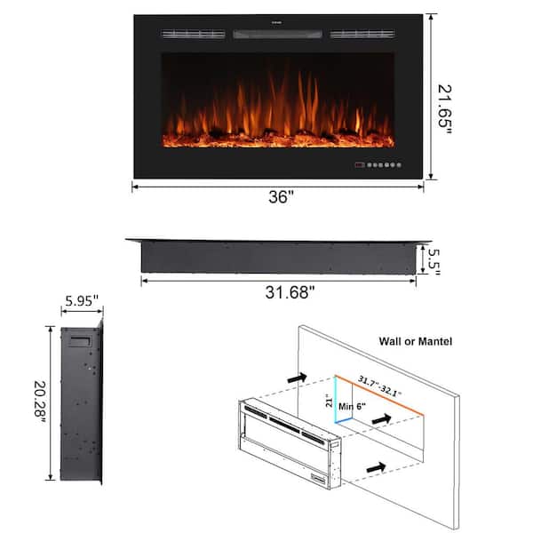 36 in. Electric Fireplace Insert with Remote and Log Crystal, Black