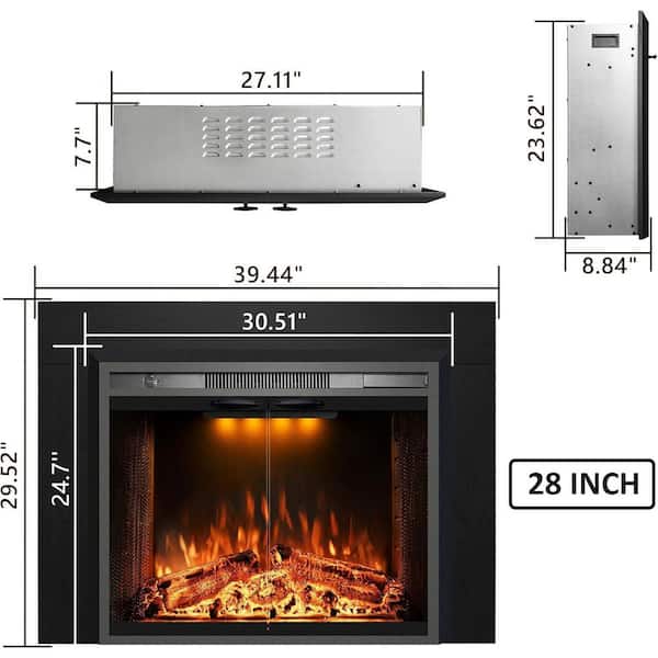 39.4 in. W Electric Fireplace Inserts with Trim Kit, Glass Door, 3 Flame Colors, Cracking Sound, Timer 1-9 H, Black