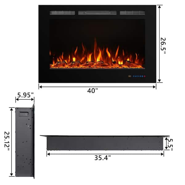 40 in. Electric Fireplace Insert with Remote and Log Crystal, Black