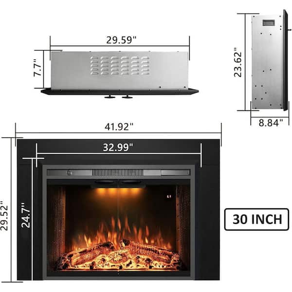 41.9 in. W Electric Fireplace Inserts with Trim Kit, Glass Door, 3 Flame Colors, Cracking Sound, Timer, Black