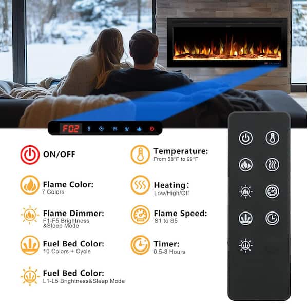 60 in. Electric Fireplace Inserts, with Mixed Flame Colors, Brightness and Speed Adjustment, Timer, Thermostat, Black