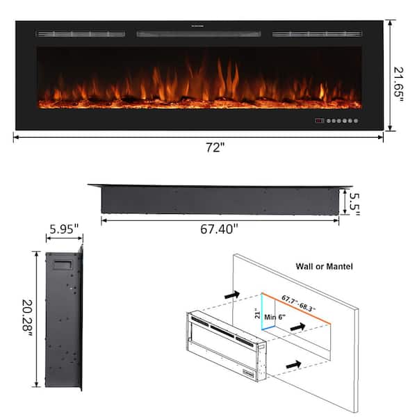 72 in. Electric Fireplace Insert with Remote and Log Crystal, Black