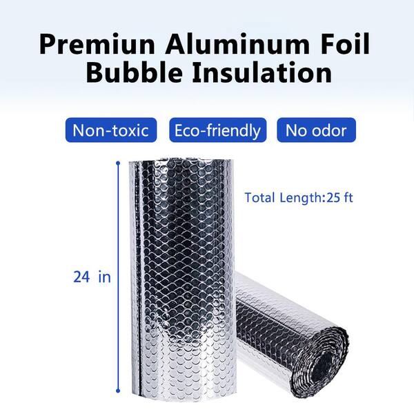 24 in. x 25 ft. Radiant Barrier Fire-Resistance Double-Sided Aluminum Foil Single Bubble Film Reflective Insulation