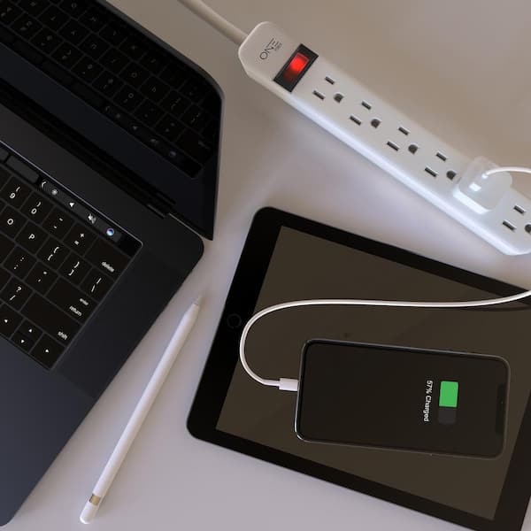 6 Outlet Power Strip with 2 ft. Cord and Low Profile Angled Plug, ETL Certified