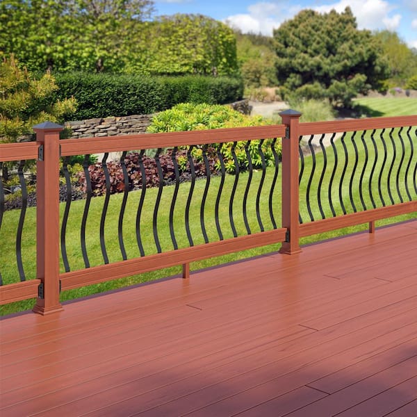 6 ft. Redwood-Tone Southern Yellow Pine Rail Kit with Aluminum Contour Balusters