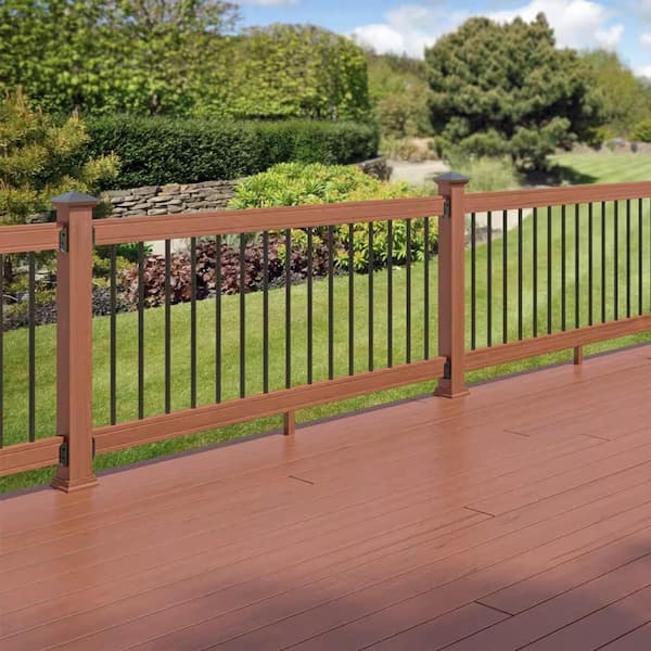 6 ft. Redwood-Tone Southern Yellow Pine Rail Kit with Aluminum Round Balusters