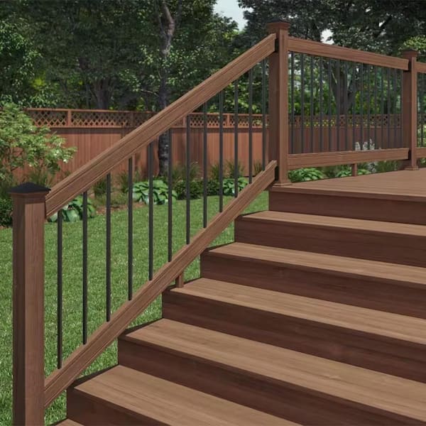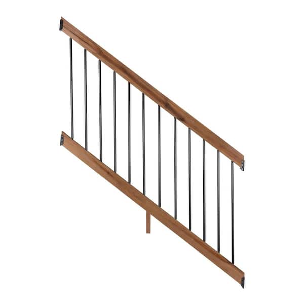 6 ft. Walnut-Tone Southern Yellow Pine Stair Rail Kit with Aluminum Round Balusters