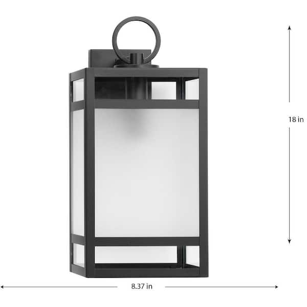 1-Light Matte Black Outdoor Lantern Parrish Clear and Etched Glass Modern Craftsman Large Wall No Bulbs Included