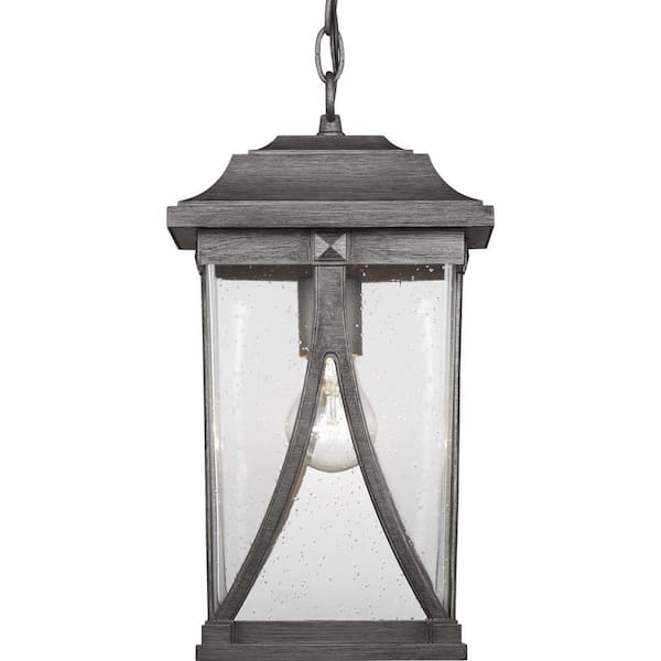Abbott Collection 1-Light Antique Pewter Clear Seeded Glass Craftsman Outdoor Hanging Lantern Light
