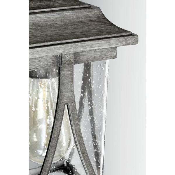 Abbott Collection 1-Light Antique Pewter Clear Seeded Glass Craftsman Outdoor Medium Wall Lantern Light