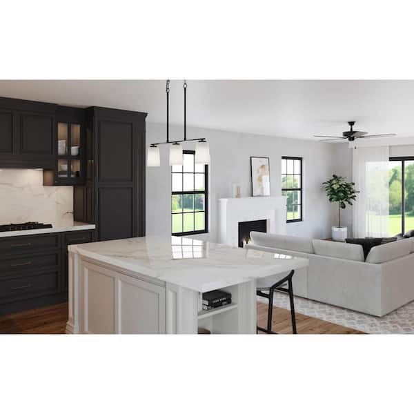 Adley Collection 3-Light Matte Black Etched White Glass New Traditional Linear Chandelier