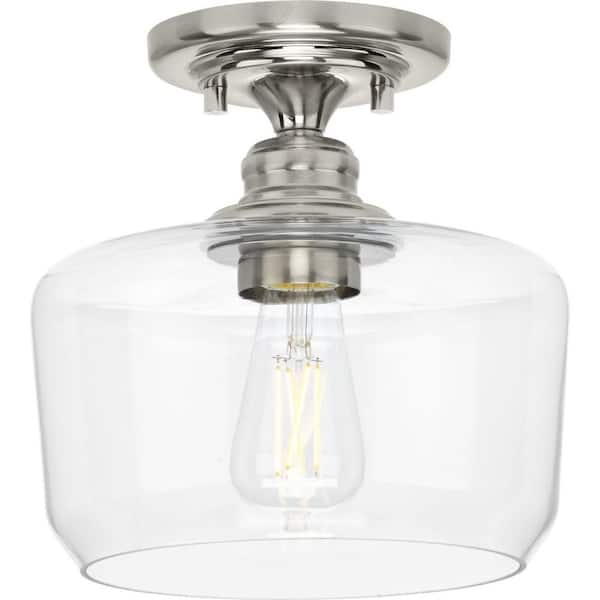 Aiken Collection 1-Light Brushed Nickel Clear Glass Farmhouse Flush Mount Light