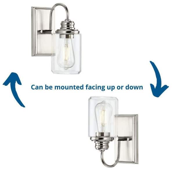 Aiken Collection 1-Light Brushed Nickel Clear Glass Vintage Wall Light