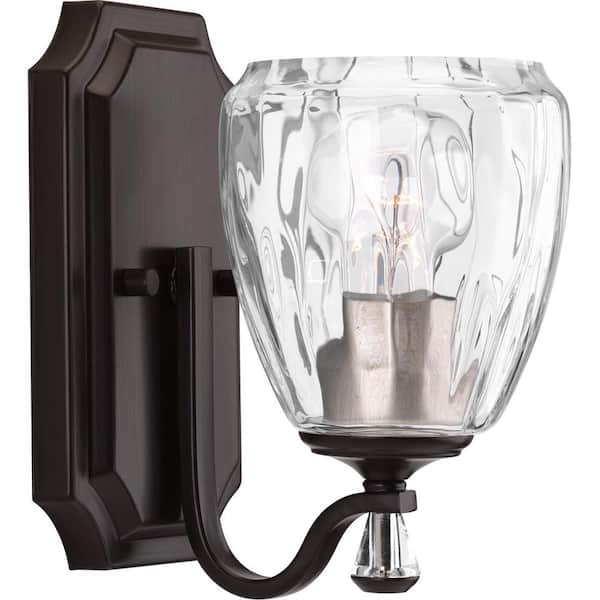 Anjoux Collection 1-Light Antique Bronze Clear Water Glass Luxe Bath Vanity Light