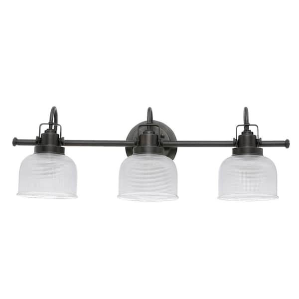 Archie Collection 26-1/4 in. 3-Light Venetian Bronze Clear Double Prismatic Glass Coastal Bathroom Vanity Light