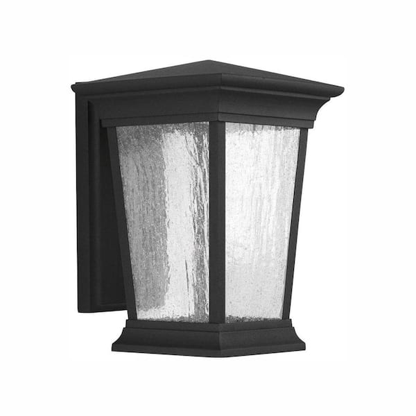 Arrive LED Collection Textured Black Clear Seeded Glass Modern Outdoor Medium Wall Lantern Light
