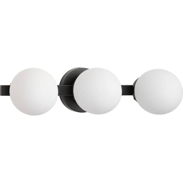 Avec 21.75 in. 3-Light Matte Black Transitional Bath Vanity Light with Glass Shades