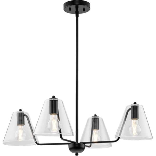 Avec 30 in. 4-Light Matte Black Contemporary Linear Chandelier