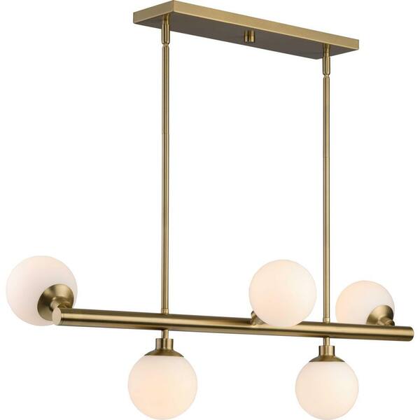 Avec 34 in. 5-Light Brushed Gold Contemporary Linear Chandelier