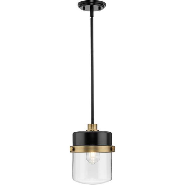 Beckner Collection 60-Watt 1-Light Matte Black Clear Glass Urban Industrial Pendant Light