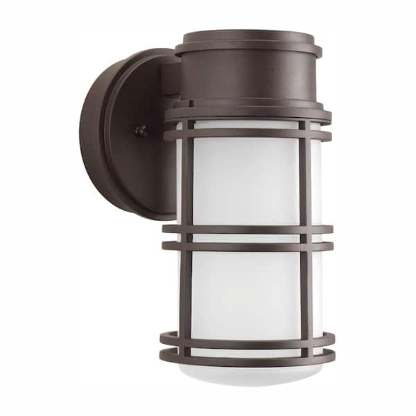 Bell LED Collection 1-Light Antique Bronze Etched Glass Craftsman Outdoor Wall Lantern Light