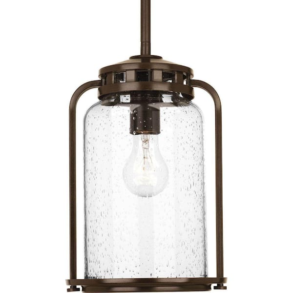 Botta Collection 1-Light Antique Bronze Clear Seeded Glass Farmhouse Outdoor Hanging Lantern Light