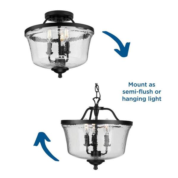 Bowman 14.25 in. Black 3-Light Semi-Flush Mount Convertible