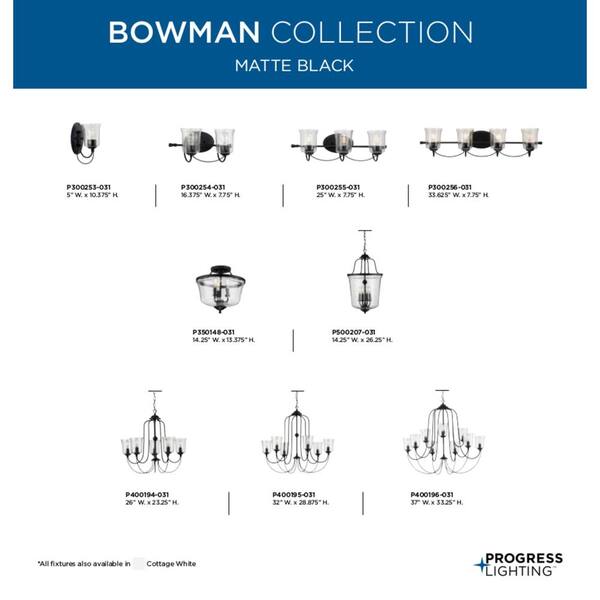 Bowman Collection 4-Light Matte Black Clear Chiseled Glass Coastal Bath Vanity Light