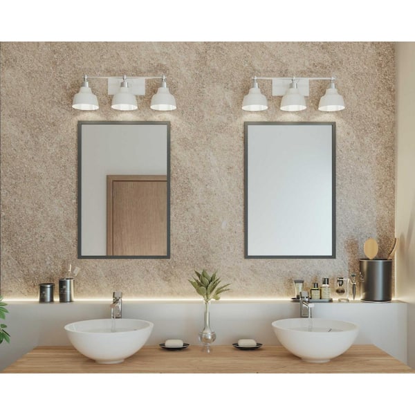 Bramlett Collection 3-Light Polished Chrome White Metal Shade Coastal Bath Vanity Light
