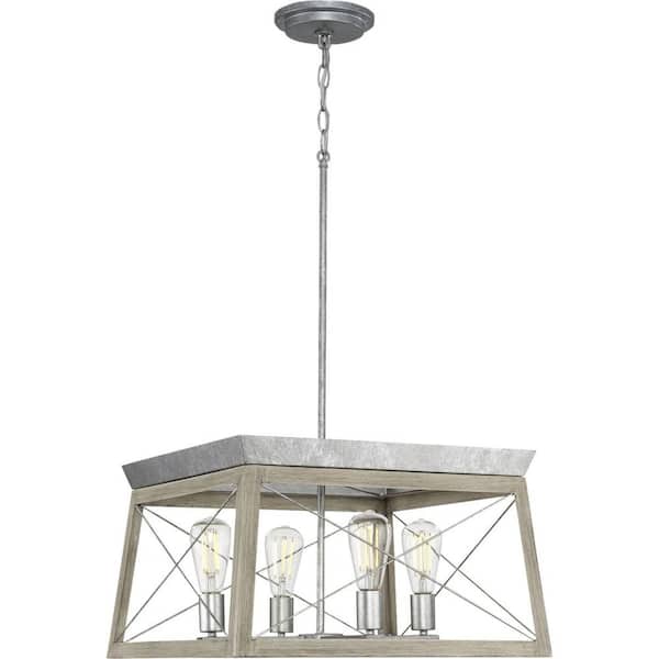 Briarwood Collection 4-Light Bleached Oak Farmhouse Square Chandelier Light