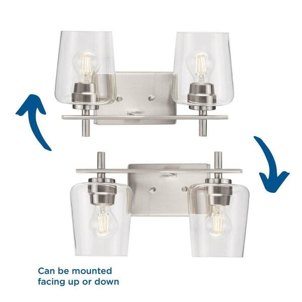 Calais 14.62 in. 2-Light Brushed Nickel Vanity Light with Clear Glass Shades New Traditional for Bath and Vanity