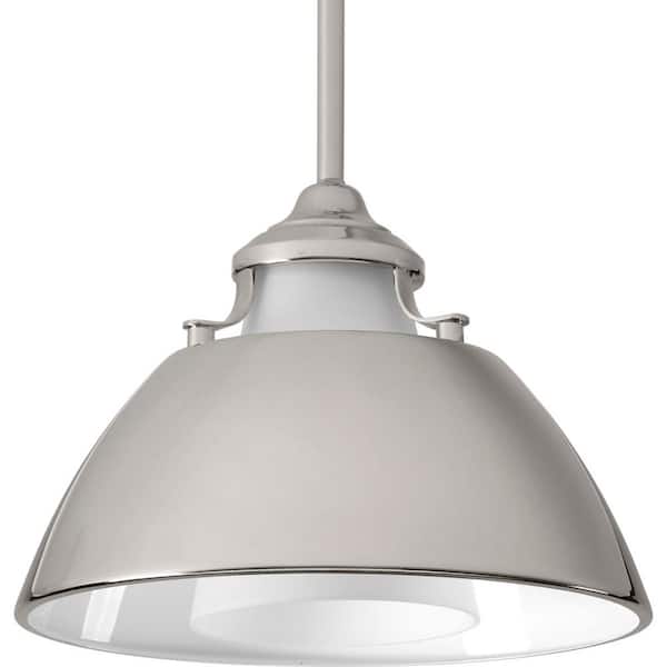 • Polished Nickel Mid-Century Modern hanging pendant light