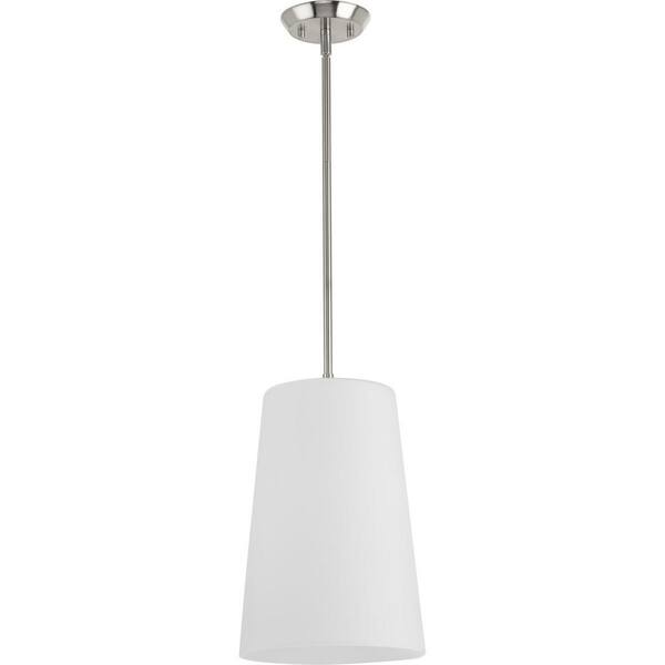 Clarion Collection 1-Light Brushed Nickel Etched White Transitional Pendant
