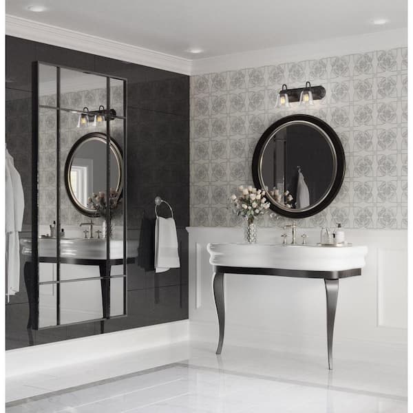 Clear Glass 18 in. 2-Light Matte Black Transitional Vanity Light with Clear Glass for Bathroom