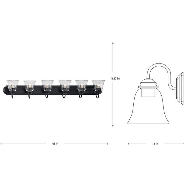 Clear Glass 48 in. 6-Light Matte Black Transitional Vanity Light with Clear Glass for Bathroom
