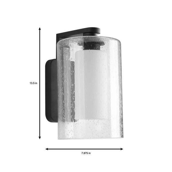 Compel Collection 1-Light Textured Black Clear Seeded Glass Modern Outdoor Medium Wall Lantern Light