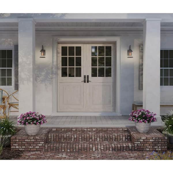 Conover Collection 1-Light Antique Pewter Clear Seeded Glass Farmhouse Outdoor Wall Lantern Light