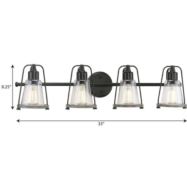 Conway 4-Light Matte Black Clear Seeded Glass Farmhouse Wall Light