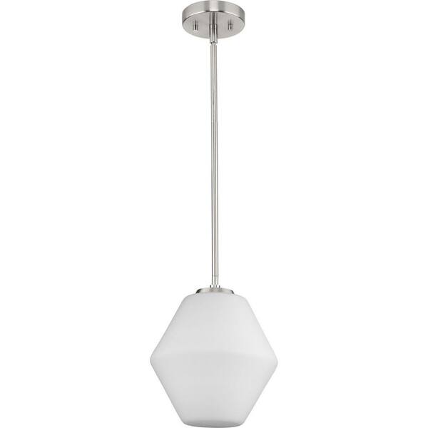 Copeland Collection 10 in. 1-Light Brushed Nickel Pendant with Etched Opal Glass Shade