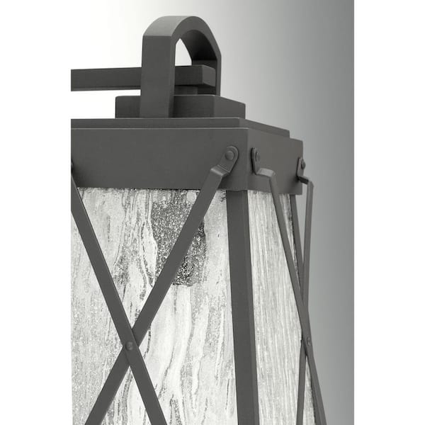 Creighton Collection 1-Light Textured Black Clear Water Glass Farmhouse Outdoor Large Wall Lantern Light