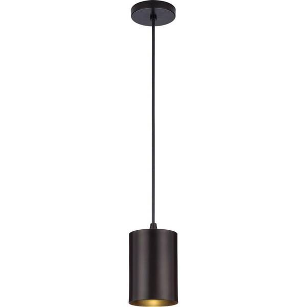 Cylinder Collection 5 in. 1-Light Antique Bronze Modern Outdoor Pendant Hanging Light