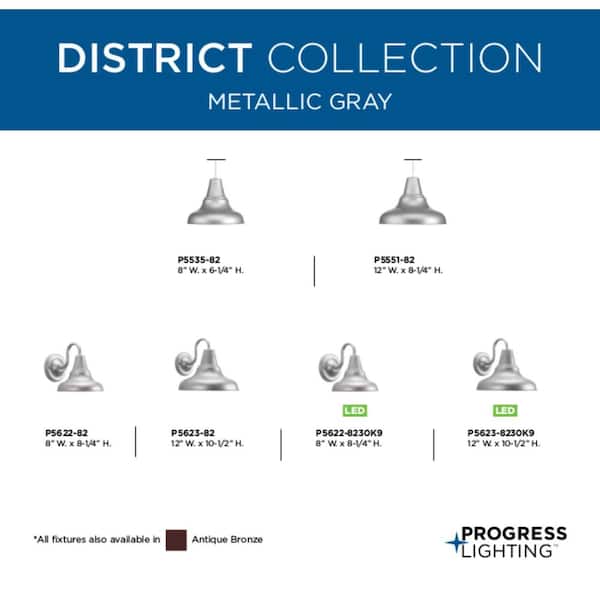 District Collection 1-Light Metallic Gray Farmhouse Outdoor Large Wall Lantern Light