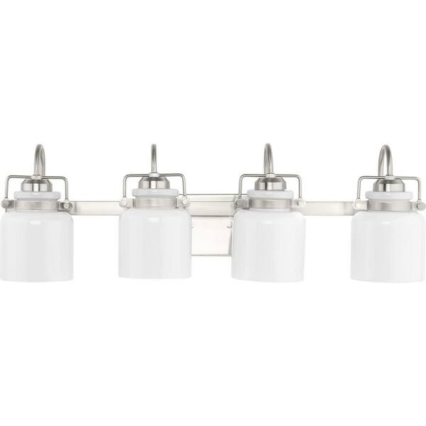Fessler Collection 29.12 in. 4-Light Brushed Nickel Opal Glass Farmhouse Vanity Light