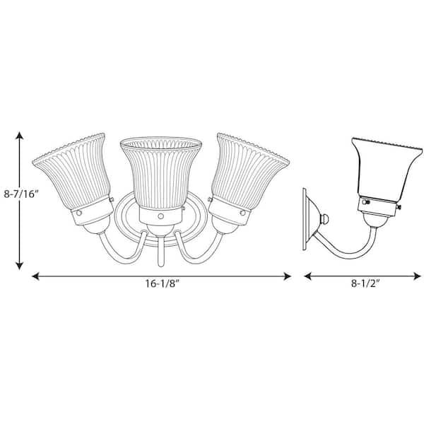 Fluted Glass Collection 3-Light Polished Chrome Etched Fluted Glass Traditional Bath Vanity Light
